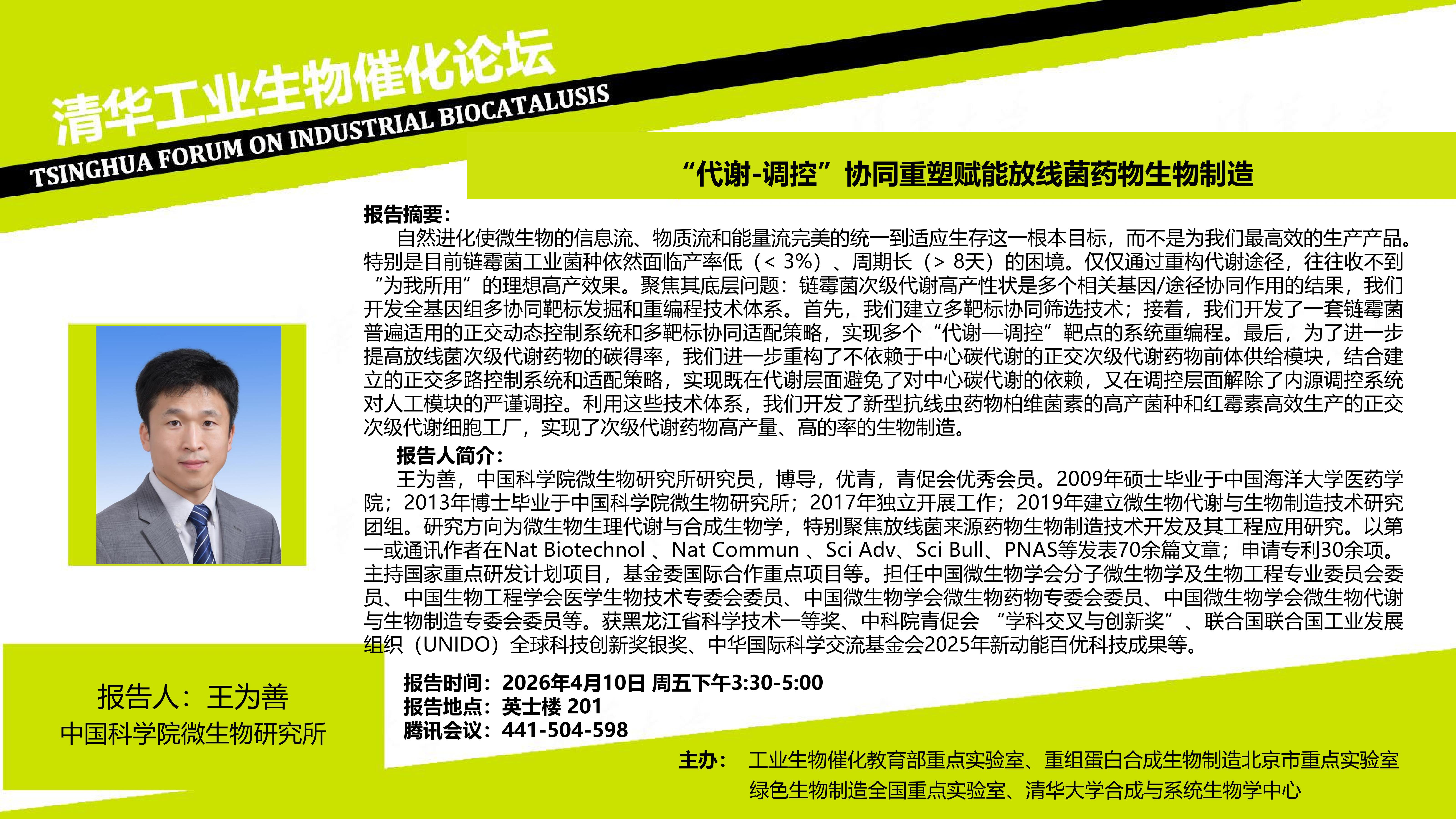 报告题目:“代谢-调控”协同重塑赋能放线菌药物生物制造