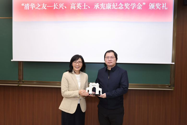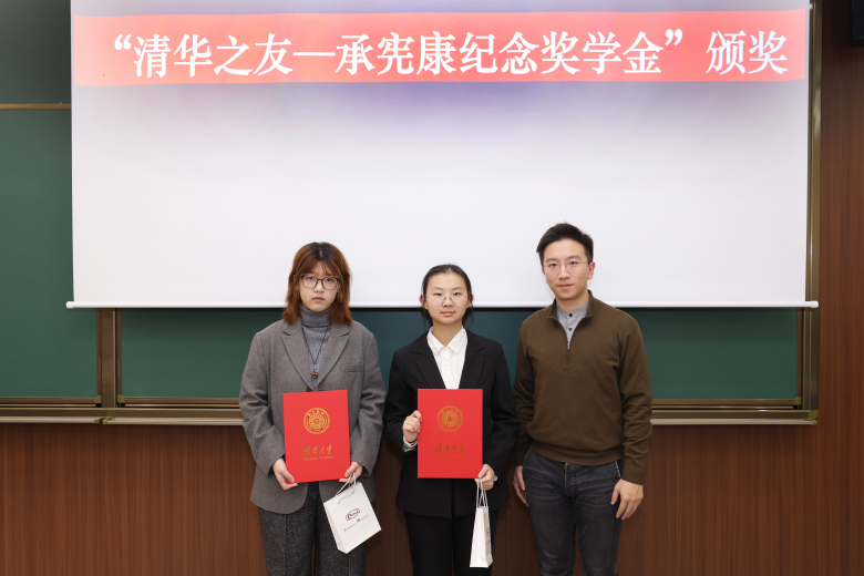 廉威向获得“清华之友-承宪康纪念奖学金”的学生颁奖