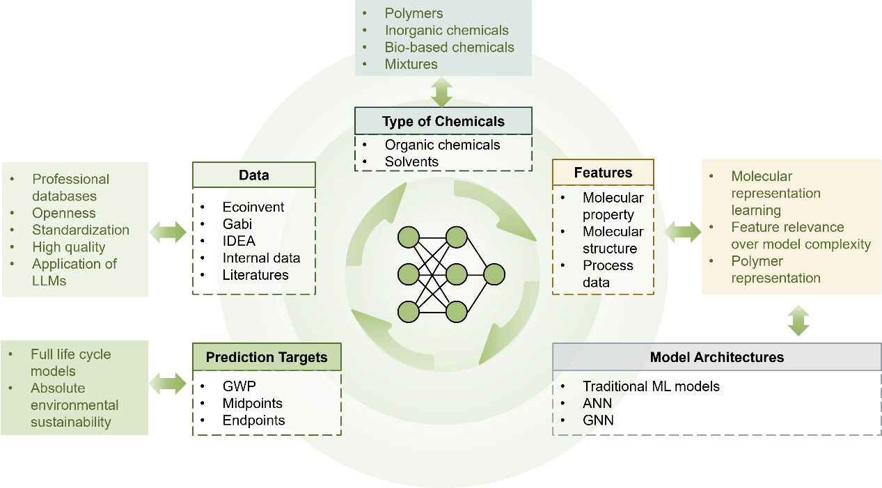 图3. 用于预测化学品生命周期环境影响的机器学习模型的核心发展方向