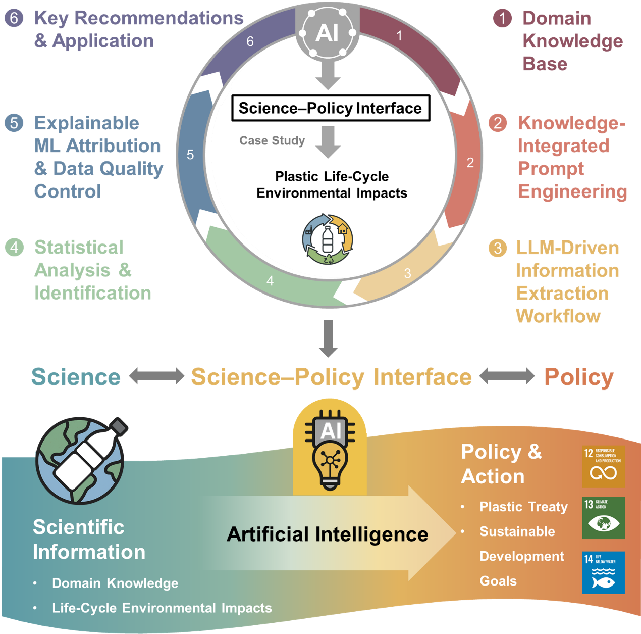 数据和知识是政策决策的重要基础,但现有科学与政策界面仍缺乏能够高效汇聚分散科学信息的可复用机制。围绕“分散的塑料全生命周期环境影响证据如何实现系统汇聚及可比分析”这一问题,研究团队构建了人工智能驱动的科学—政策界面(science–policy interface)框架。该框架融合领域知识、提示词工程与大语言模型支持的的自动化信息提取流程,对分散在海量文献中的信息进行结构化转换与跨研究集成,形成塑料全生命周期环境影响(PLCEI)结构化数据库。该数据库由1,423篇高质量相关研究论文支撑,并按研究对象进一步拆分扩展为3,017条记录、覆盖94个信息维度,包含塑料类型、系统边界、时空范围、数据来源、影响指标、不确定性分析与耦合模型等要素。数据库分析揭示了塑料助剂、工程塑料和化学回收技术等方向的环境影响信息存在关键缺口,也显示全球研究信息在地区间分布不均衡。针对数据本身,团队进一步引入可解释机器学习,对导致不同研究结论差异的因素进行量化归因,指出数据来源选择与是否开展不确定性分析等方法学要素是影响结果差异的重要间接因素,为后续开展数据质量控制与统一报告规范提供了可操作的分析依据。相关成果以“面向全球塑料全生命周期环境影响的人工智能驱动科学-政策界面框架”(Artificial intelligence-driven framework for science–policy interface on global plastic life-cycle environmental impacts)为题,于2025年12月26日发表于细胞(Cell)出版社交叉学科期刊《联结》(Nexus)。