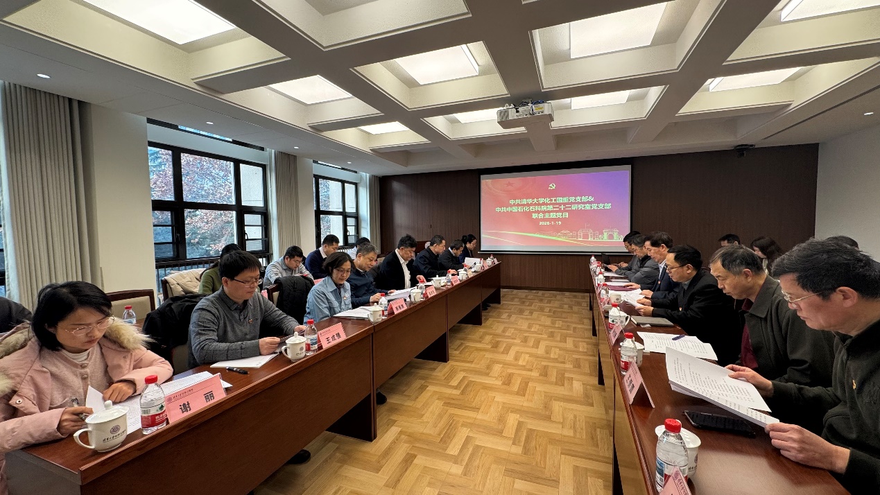 1月19日,以“党建引领聚合力,绿色化工启新程”为主题的化学工程与低碳技术全国重点实验室党支部与石科院第二十二研究室党支部联合主题党日活动在工物馆324A举办。双方围绕全国重点实验室建设成果、绿色化工领域科研创新、技术成果转化等关键议题深入交流,梳理双方优势资源,达成以党建为引领深化全方位协同合作、共促绿色化工产业高质量发展的共识。石科院党委副书记田树新,中国石化首席专家宗保宁,中国石化高级专家慕旭宏,石科院首席专家张晓昕,第二十二研究室副主任赵俊琦,石油化工分子转化与反应工程全国重点实验室办公室主任陈蓓艳,中国科学院院士、化学工程与低碳技术全国重点实验室主任骆广生,化工系党委书记吕阳成,化工系副系主任王海辉、王凯,化学工程与低碳技术全国重点实验室副主任徐建鸿、张吉松、林亚凯等20余人参加活动。